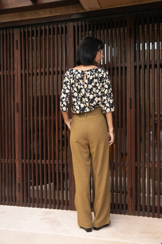 Made from completely recycled & sustainable fabric, these pants are an eco-conscious choice without compromising on style. In this super classic earthy hazel shade cotton - linen.