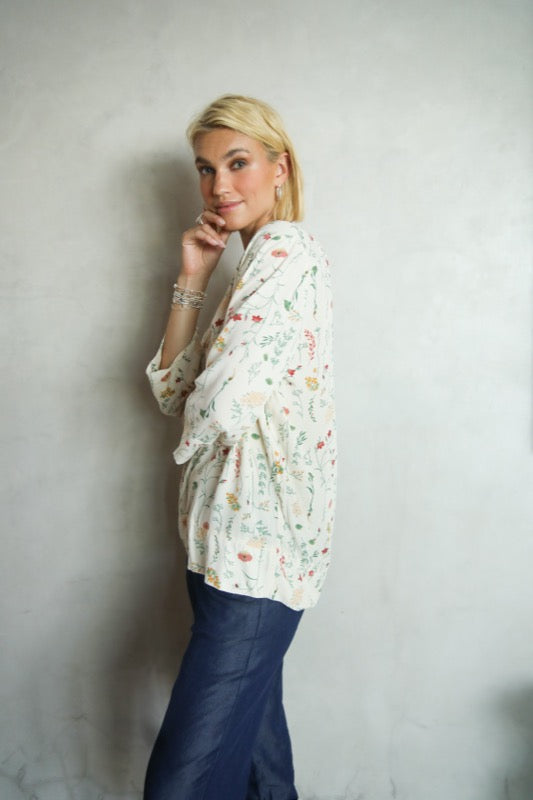This fresh flowers print kaftan style top features 3/4 sleeves and a flattering A-line body, designed to fit you like a dream.