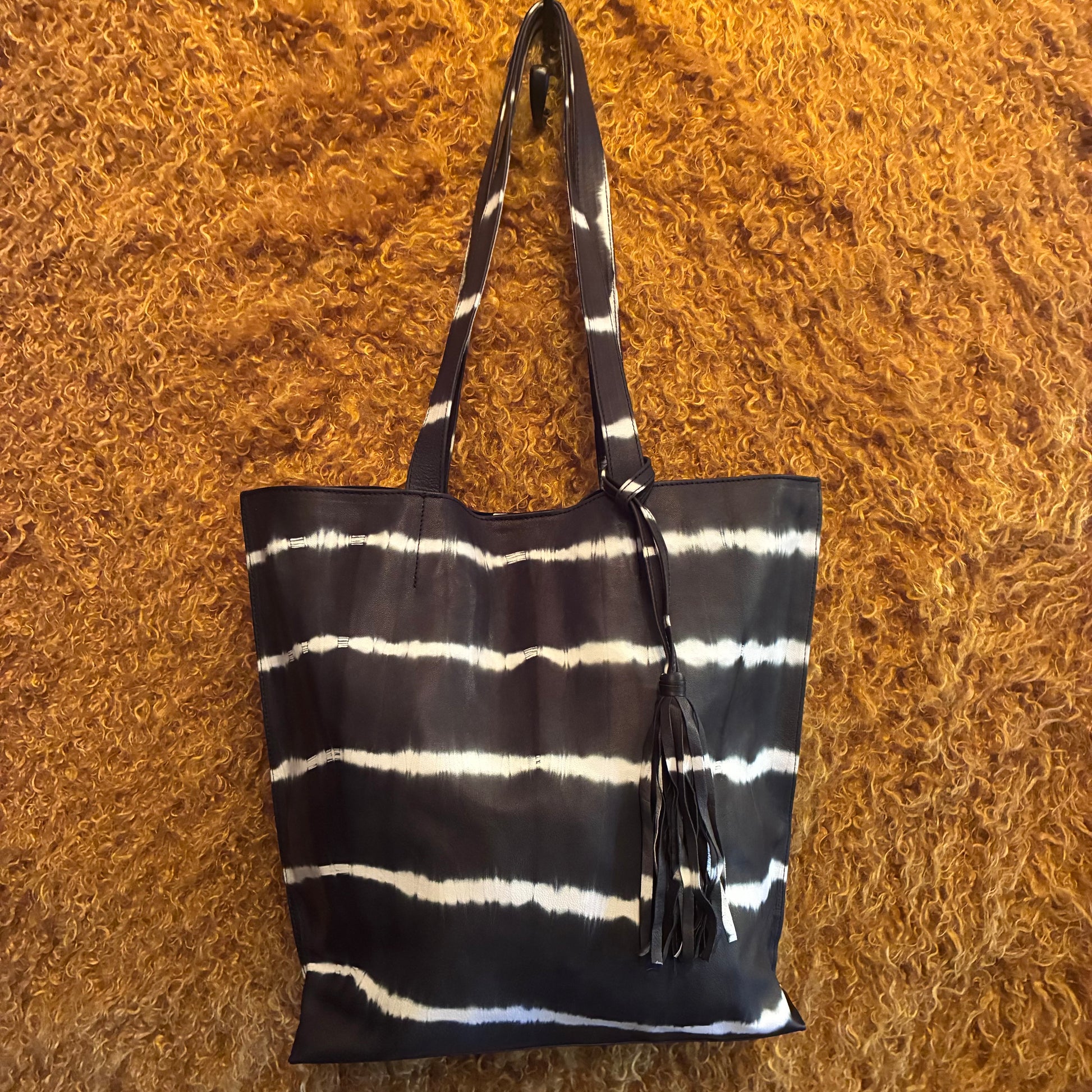 Jenny Tote Bag - Black Bean Tye Dye Leather