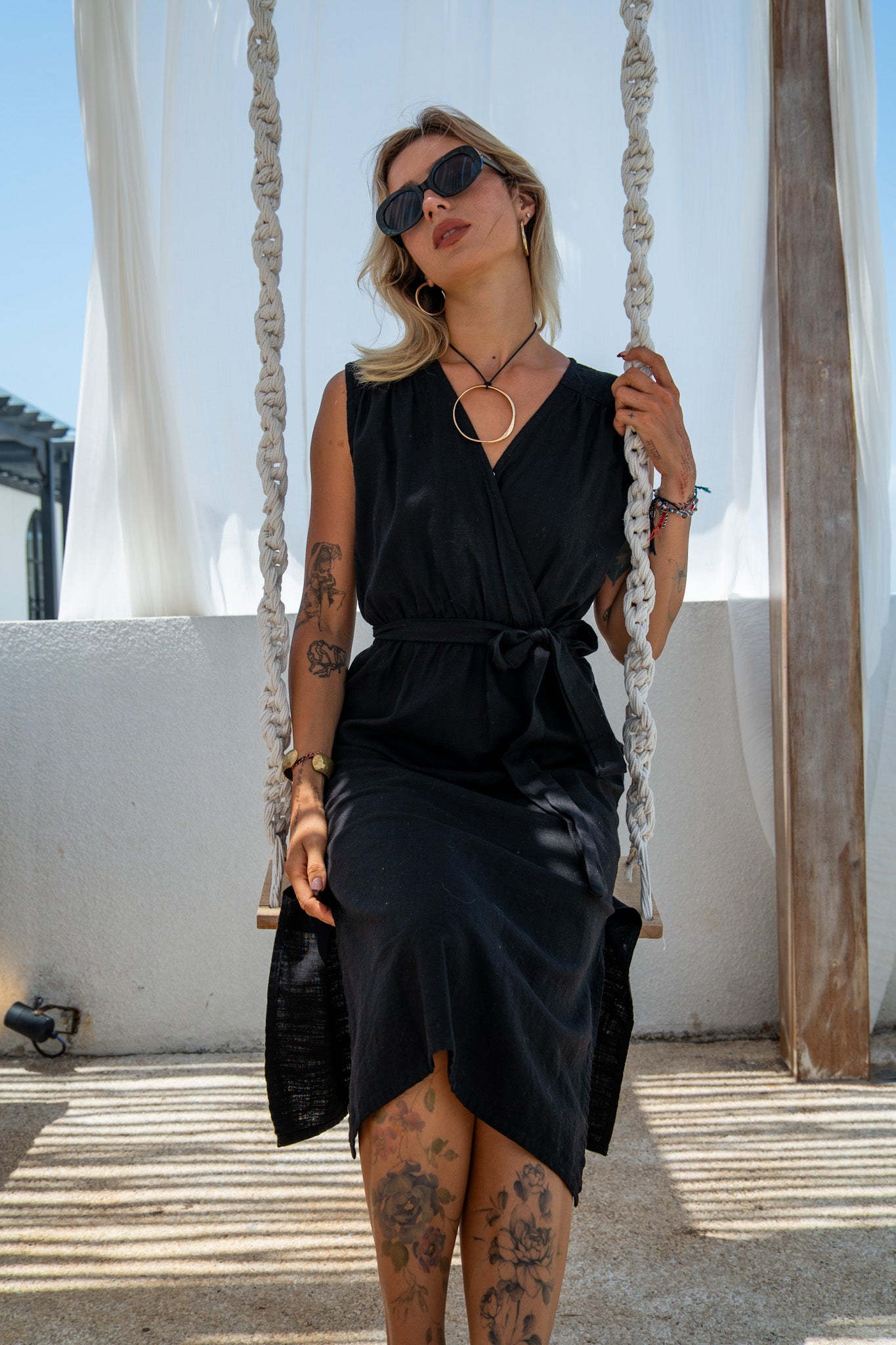 So popular so we've brought her back sleeveless and is in this stunning jasper linen black fabric.