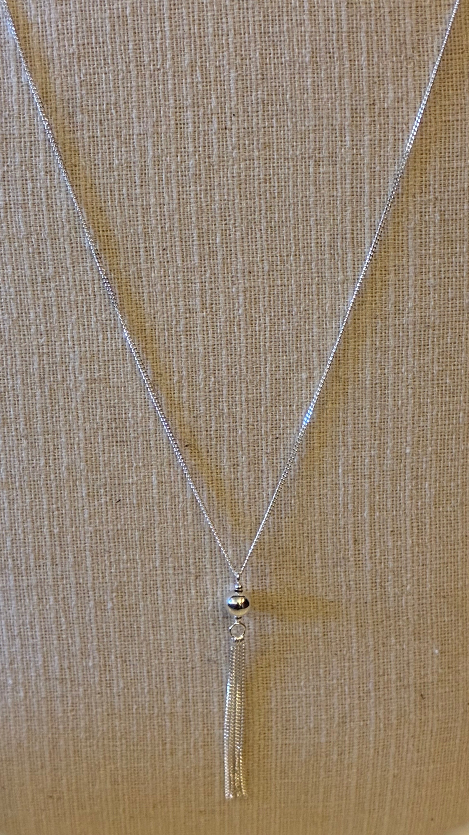 This pretty tassel features bead detail on a fine sterling silver chain, adding a touch of elegance to any outfit.
